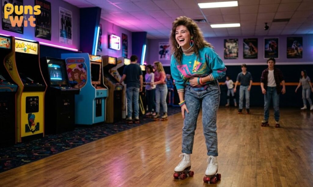 The best 80s jokes pull from things like cassette tapes, VHS players, Rubik’s Cubes arcade games, neon fashion and classic 80s slang. These topics instantly signal the decade and bring the humor to life naturally.